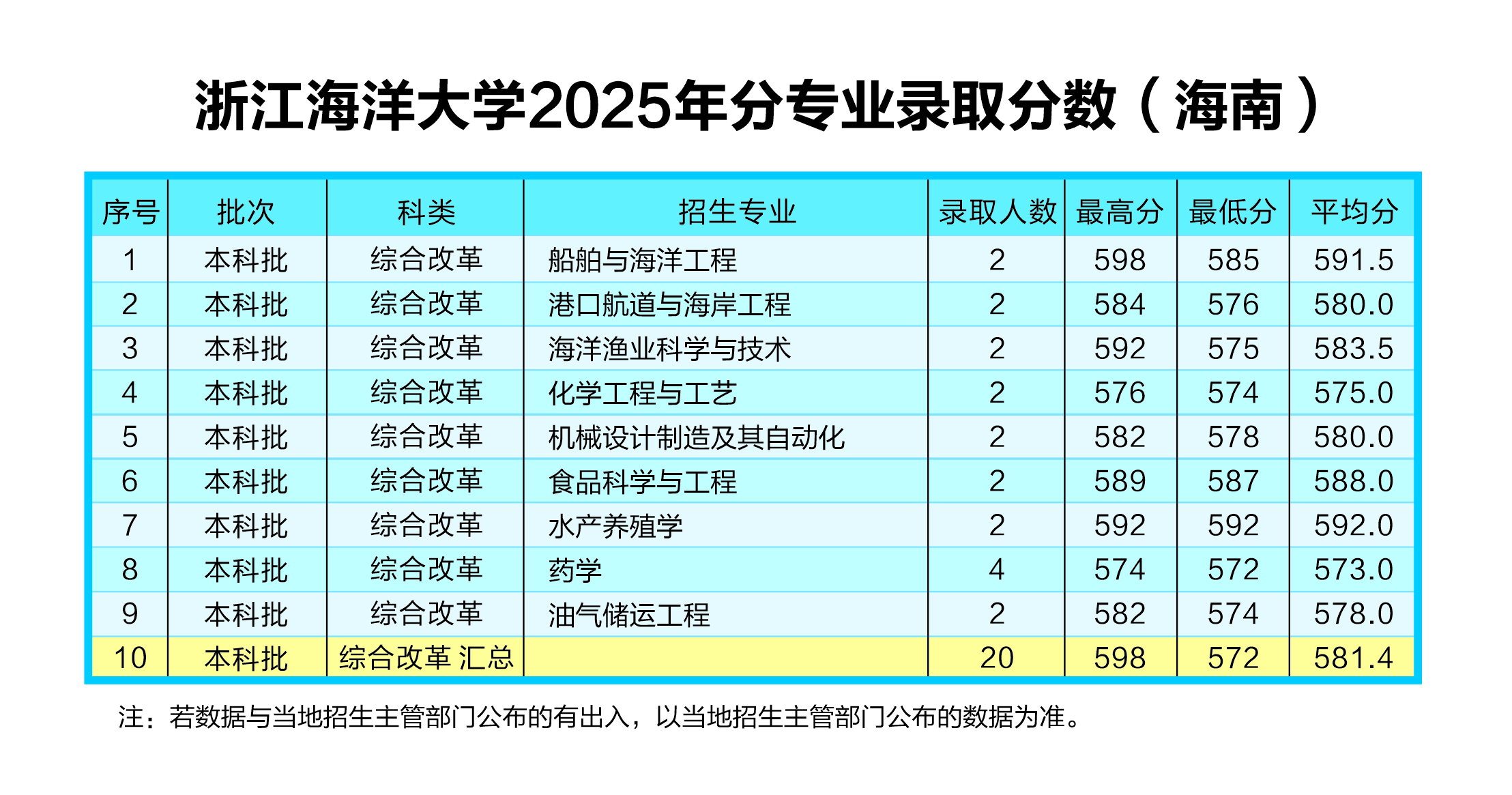 浙江海洋大学2025年分专业录取分数(海南)