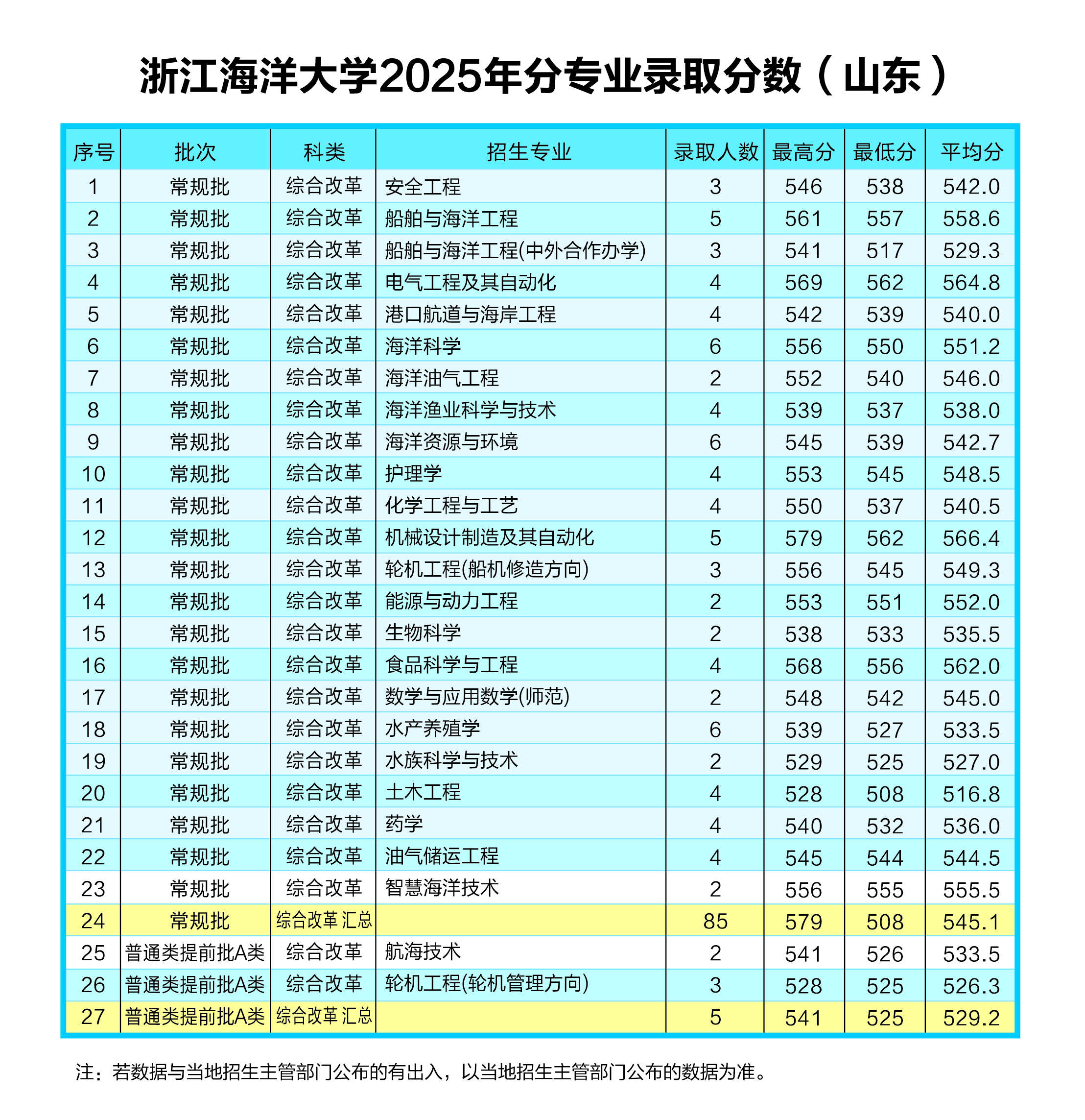 浙江海洋大学2025年分专业录取分数(山东)