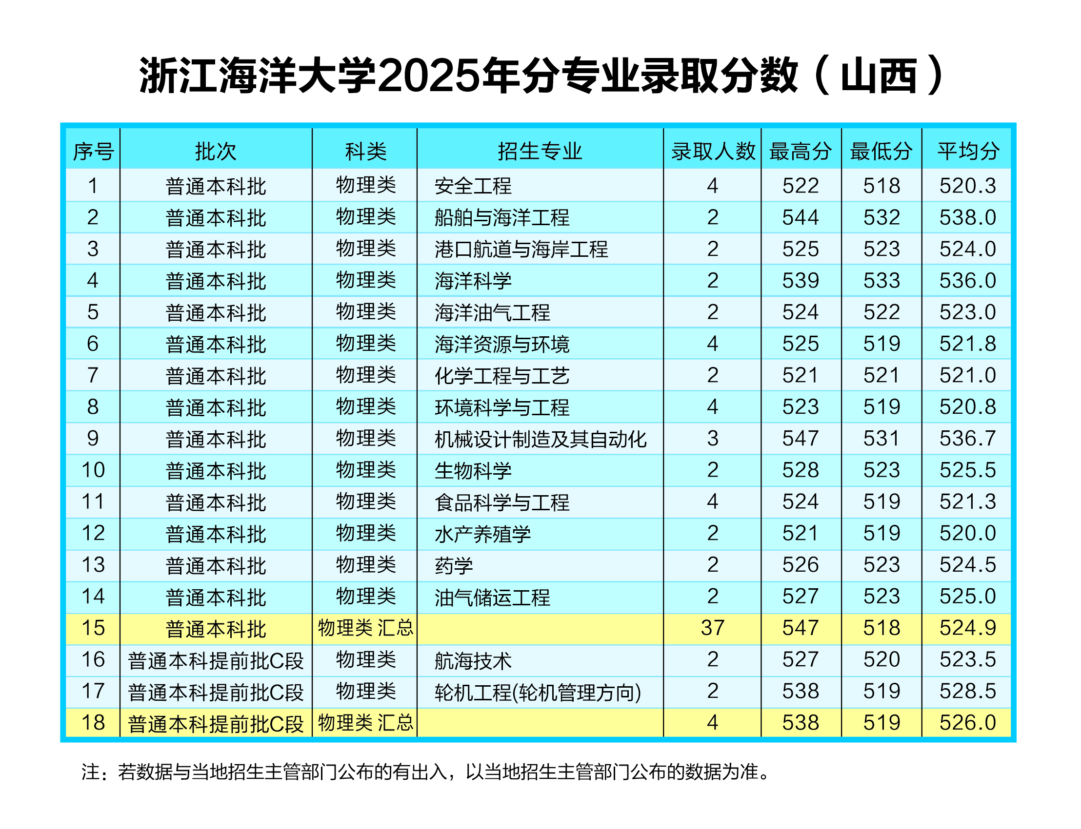 浙江海洋大学2025年分专业录取分数(山西)